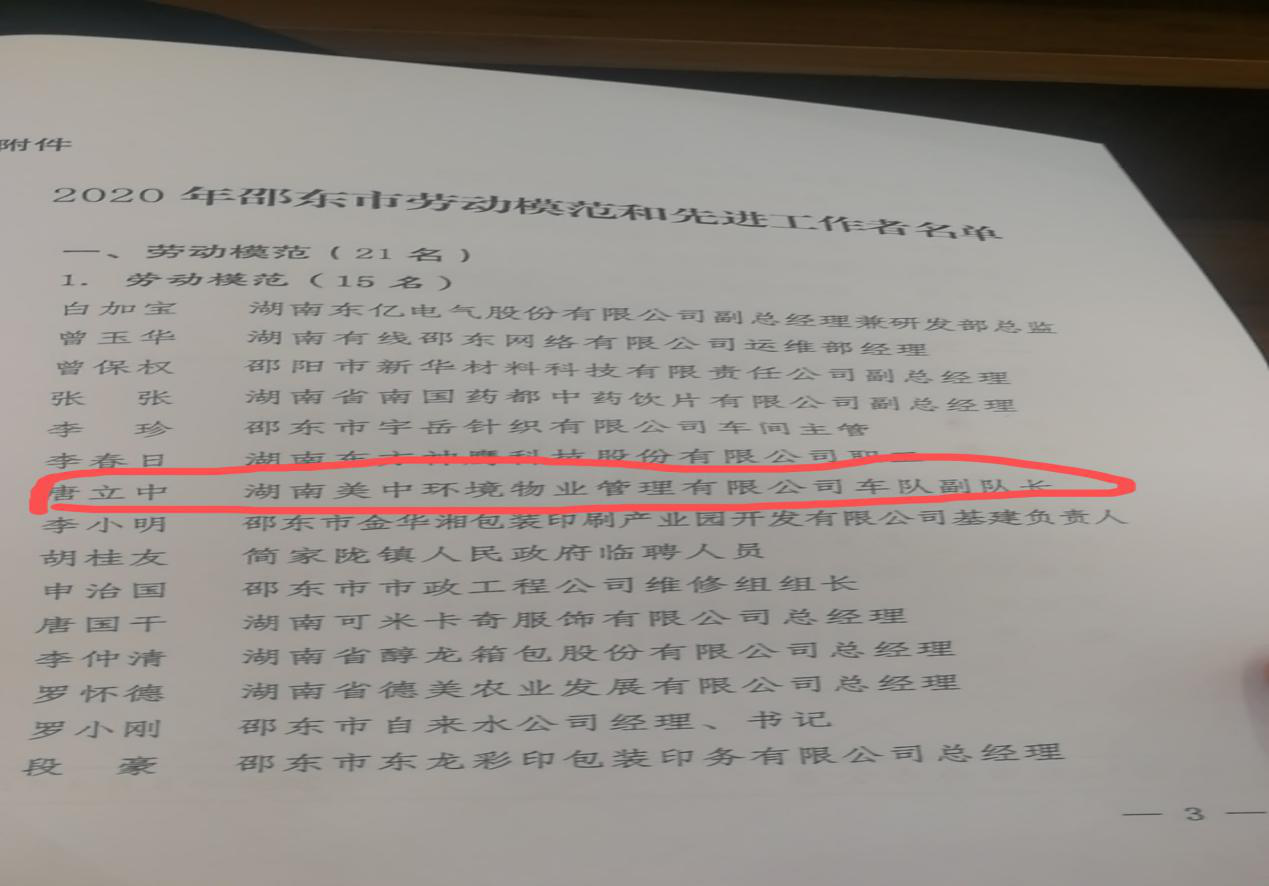 五一前夕,邵東市總工會發(fā)文決定表彰2020年“邵東市五一勞動獎章”和“邵東市勞動模范”,美中環(huán)境唐立中同志榜上有名!
